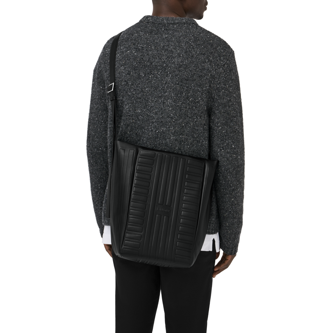 Сумка входит в коллекцию Groove, где культовый рифлёный узор бренда переосмыслен через смелые горизонтальные и вертикальные линии, отсылающие к алюминиевым чемоданам RIMOWA.