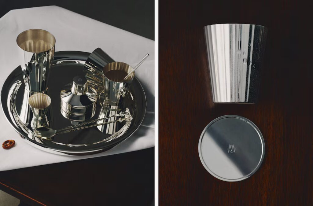 Внутри, на подкладке из микрофибры, размещены все необходимые принадлежности для приготовления коктейлей на двоих: специально разработанный шейкер с встроенным ситечком, один мерный стакан, два стакана, две гравированные подставки, две серебряные трубочки и ручная ложка, которая также служит толкателем. Каждый аксессуар имеет совместную гравировку, специально созданную для этого сотрудничества, а также в комплект входит набор для ухода, состоящий из салфетки для полировки и щетки для чистки.